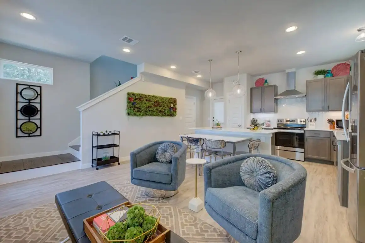 আপনি যদি একটি অনন্য এবং আড়ম্বরপূর্ণ বাড়ি খুঁজছেন, তাহলে আপনি সান আন্তোনিওতে এই অদ্ভুত তিন-তলা টাউনহাউসটি পছন্দ করবেন। 2021 সালে নির্মিত, বাড়িতে অত্যাধুনিক সুযোগ-সুবিধা রয়েছে এবং আধুনিক, সুলভ গৃহসজ্জার সামগ্রী ব্যবহার করে সুন্দরভাবে সজ্জিত করা হয়েছে।